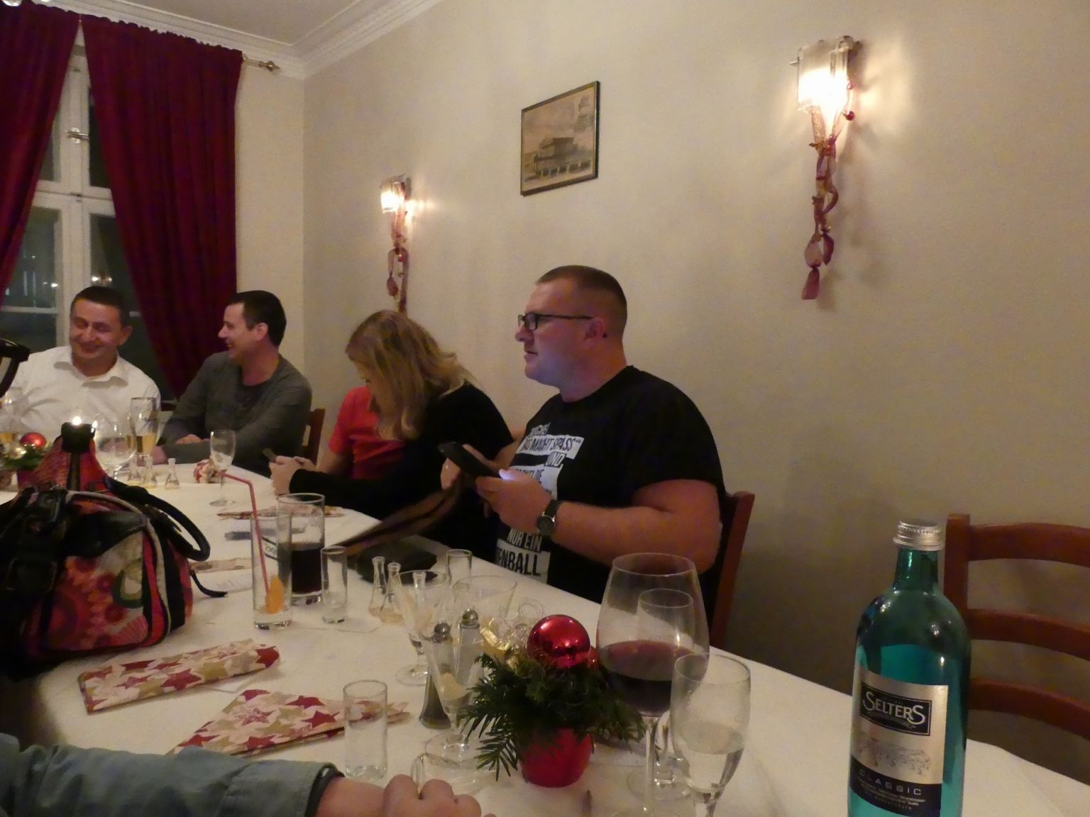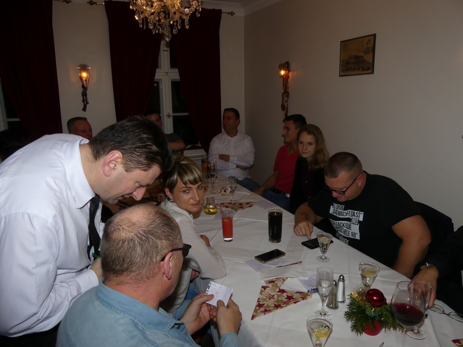 Am 10.12.2016 fand unsere Weihnachtsfeier im Berliner Stadtteil Spandau statt. Um die historische schöne Altstadt etwas besser kennenzulernen, haben wir den Historiker Herrn Semmler für einen Rundgang gebucht. Zwei Stunden wurden wir durch die Spandauer Altstadt geführt und haben dabei vieles über die Historie von Spandau, das bis 1920 eine eigenständige Großstadt war, erfahren. Nach einem kurzen Zwischenstop zu einem Glühwein auf dem Weihnachtsmarkt ging es zur Gaststätte "ALTSPANDAU". Dort hatten wir einen kleinen Saal gebucht. Der Raum war sehr hübsch eigedeckt und wir wurden freundlich empfangen und bestens bedient. Das Essen war sehr lecker und alle sind satt geworden. Die speziell kroatischen härteren Getränke waren für eine gute Verdauung bestens geeignet. Obwohl sie ihre Wirkung nicht verfehlten. Gegen 23.30 Uhr beendeten wir diesen schönen Abend und machten uns auf den Weg nach Hause. Das galt aber nicht für alle. Einige ließen den schönen Abend (oder besser Morgen) in einer Bar ausklingen.